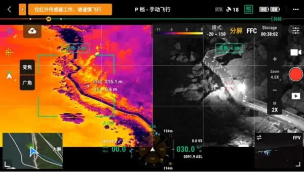 供熱管網(wǎng)在整個(gè)供熱系統(tǒng)中具有重要的地位,面對(duì)龐大的供熱管網(wǎng),管網(wǎng)泄漏普查中傳統(tǒng)人工巡檢方式效率低、反應(yīng)慢、失誤多。紅外熱成像關(guān)注的是熱源,而不是可見(jiàn)光,可以拍攝設(shè)備的過(guò)熱點(diǎn)、建筑物熱量流失位置。對(duì)于直埋供熱管道,通過(guò)紅外熱成像儀航拍,得到直埋供熱管道上方地面的熱圖像,從而監(jiān)測(cè)管道的完好程度,快速篩查疑似泄漏點(diǎn),降低水耗損失及運(yùn)行風(fēng)險(xiǎn)。無(wú)人機(jī)搭載紅外熱成像儀的巡檢方式靈活機(jī)動(dòng),受地形影響小,大大提高了巡檢效率。