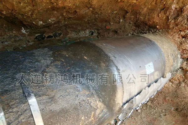 四川攀枝花一處地下管線因施工被破壞,管道材質(zhì)為鋼管,管徑426mm,壓力2公斤左右,管子漏點(diǎn)處有十五公分直徑漏洞,由于是煤氣管,搶修迫在眉睫,此漏點(diǎn)造成周邊區(qū)域停氣,需要快速補(bǔ)漏,使用“鑄鴻”雙卡板式修補(bǔ)器進(jìn)行快速修復(fù),從開(kāi)挖到回填,整個(gè)過(guò)程不到三個(gè)小時(shí),恢復(fù)送氣!