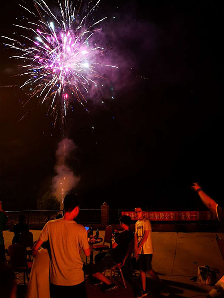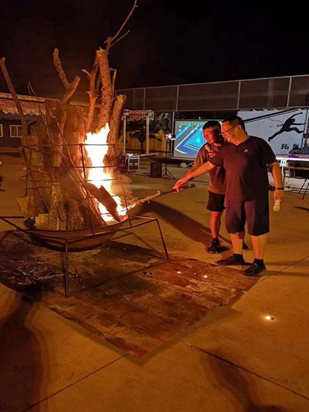 (總經(jīng)理郭文星點(diǎn)燃篝火)