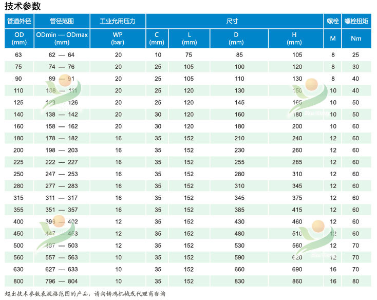 如果管道是由軟的熱塑材料(如PE)做成的,必須使用支撐環(huán)。支撐環(huán)放置在所連接的兩根管子末端區(qū)域,防止管道的過度變形。技術(shù)參數(shù):